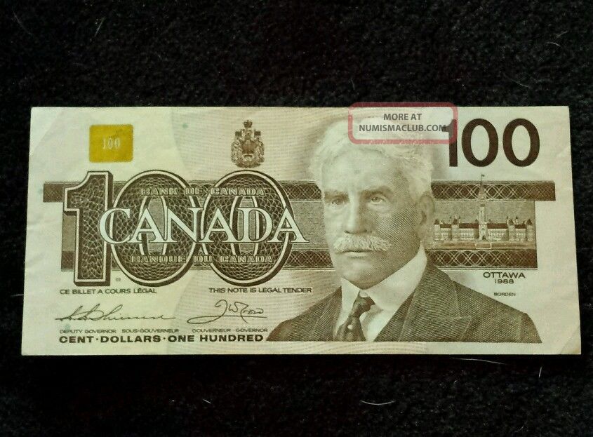 BUNDLE/LOT of 3 - 1988 Canadian $100 One Hundred Dollar Banknote, Bank Of Canada. C $499.00. or Best Offer. Free shipping. 12 watching. Sponsored Sponsored Ad. Canada 100 Dollar 1988 BORDEN Bill UNC RARE. C $500.00. or Best Offer. C $55.00 shipping. 18 watching. 1988 Ottawa Canadian 50 Dollar Bank Note. C $68.34.